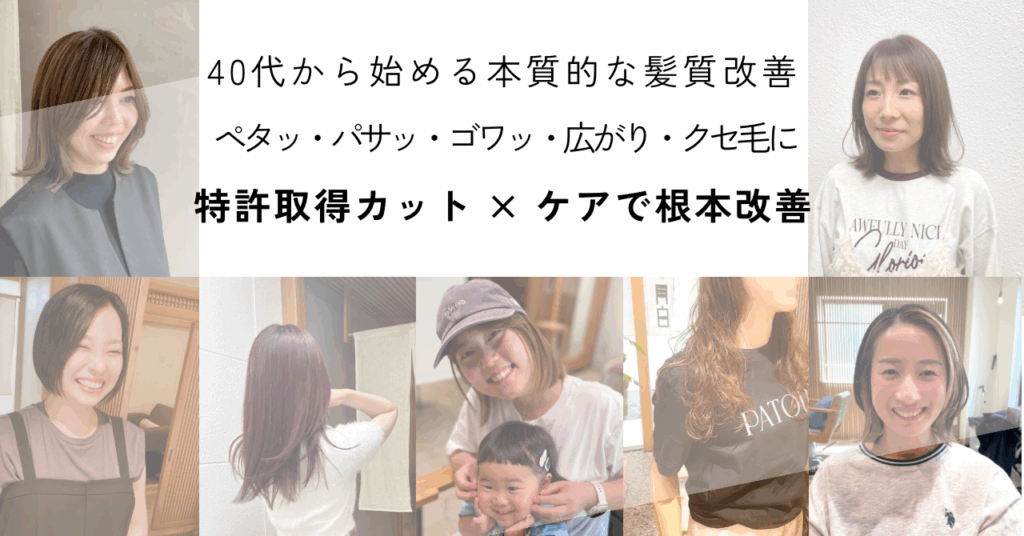 当店では、まずはステップボーンカットで扱いやすい土台を作り、必要に応じて根本ケアを少しずつプラスしていく方法を大切にしています。
