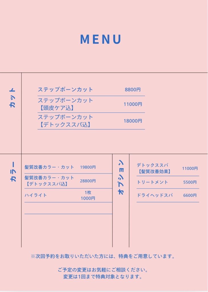 キッズカット 4400円・小学生 4950円・中学生 5500円・高校生 6600円・大学生 7150円でのご案内となります。